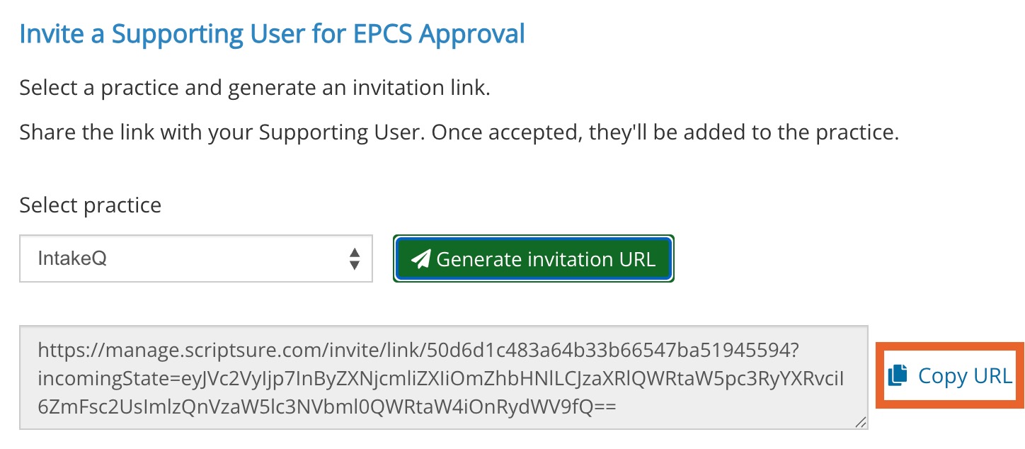 Scroll down to the Invite a Supporting User for EPCS Approval heading.