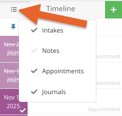 - Yes! Click the Filter List icon on the top left of the timeline and select the items you wish to see. Your selected items will display a dark arrow and your unselected items will display a light arrow.