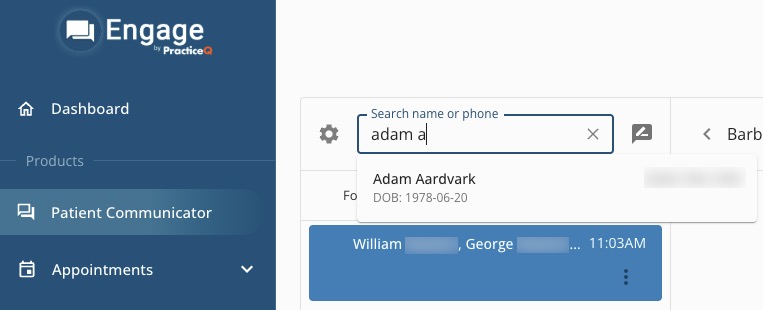 - Click Patient Communicator and type the client's name in the Search box.