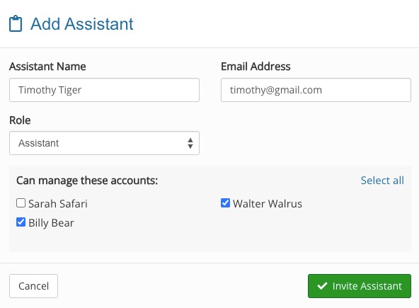 Note: If you need to re-send an invite, you must first remove the assistant and re-add them.