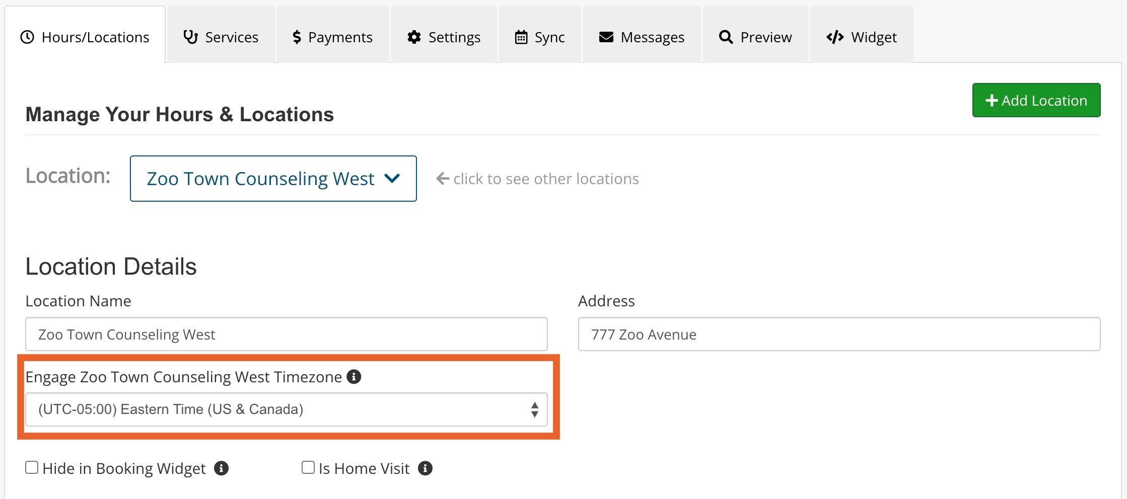 Note: This will update the timezone used in Engage but will not affect the appointment times for the location.