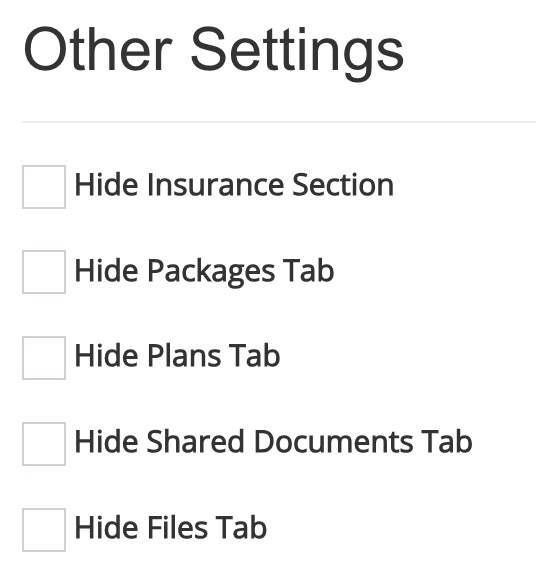 - Check the boxes for the fields/tabs you wish to hide under the Other Settings heading.