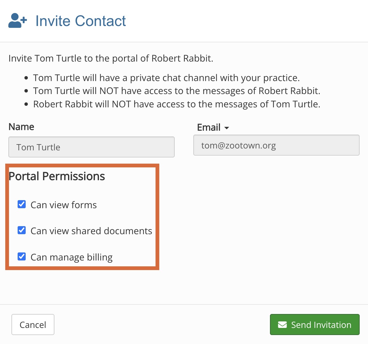 - Select the Portal Permissions you wish them to have; select Can view forms and Can view shared documents.
