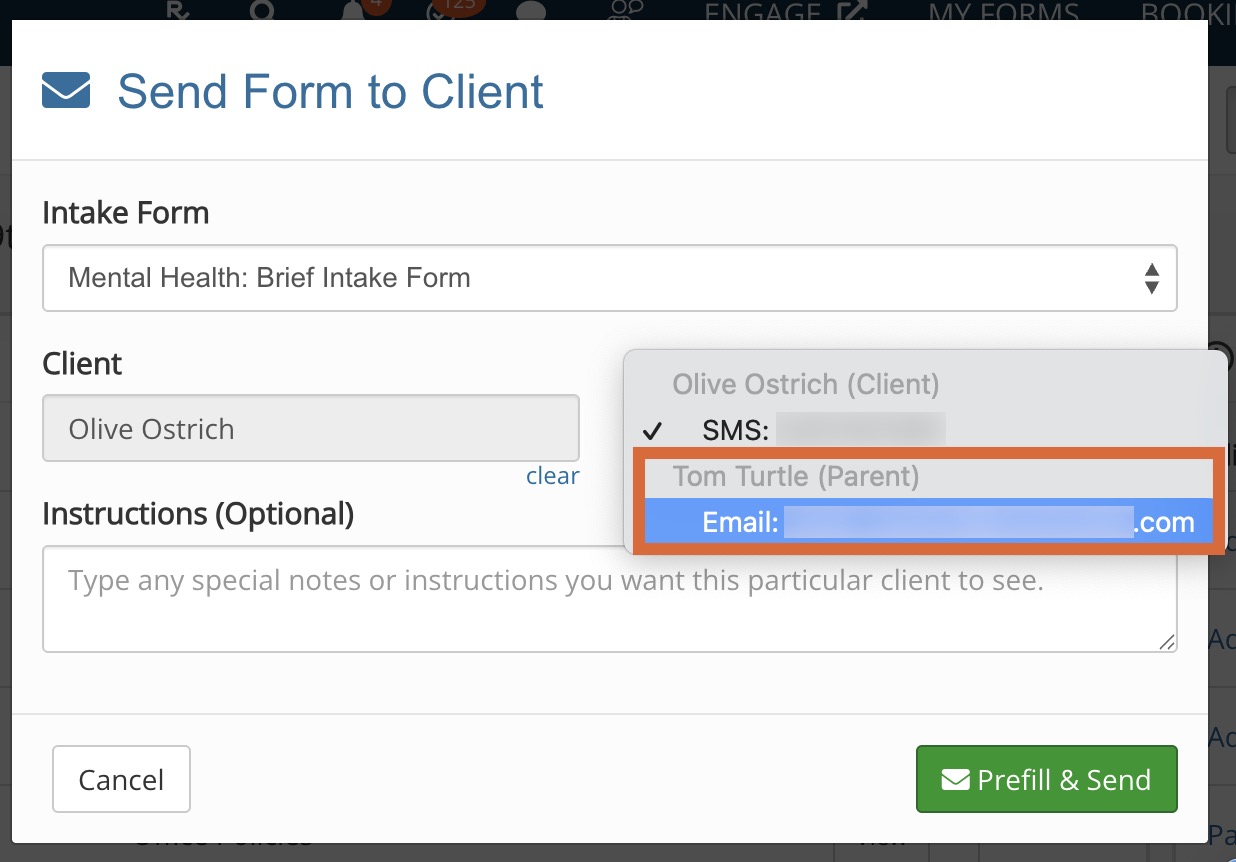Some clients - such as minors - do not have their own email in PracticeQ. Here is how to send forms to their contacts for completion.