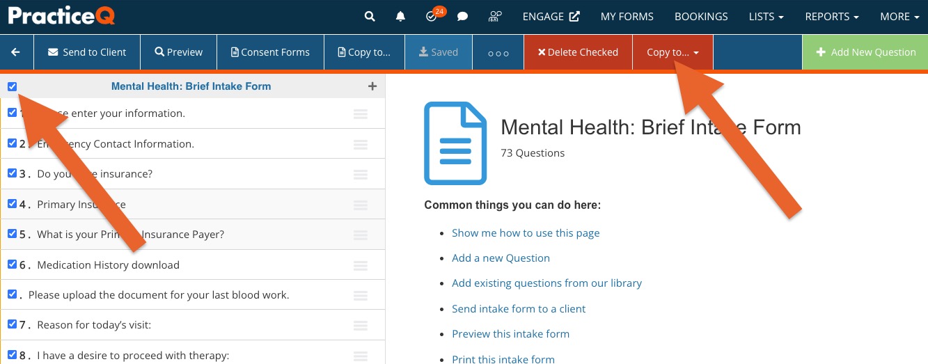 - Repeat steps 4, 5, and 6 to add questions from other forms.