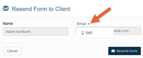 - Did you originally send the form via email, and want to re-send it to the client via SMS, or vice versa?