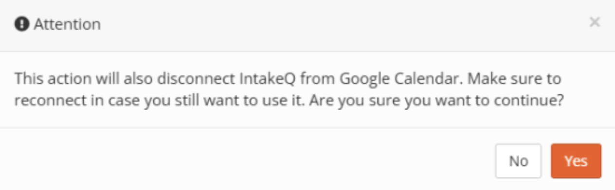 - If you disconnect Google Drive from IntakeQ/PracticeQ, it will also disconnect your Google Calendar integration.