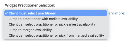 - Client can select practitioner or pick from merged availability: This option is a mix of the last 2 options above. It will allow the client to choose a practitioner but it will also show them the merged availability for all the practitioners.
