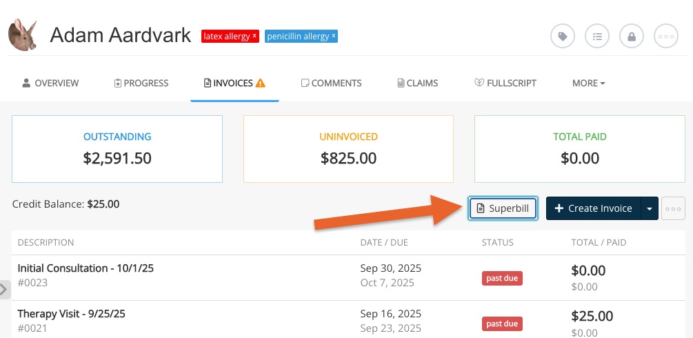 For more information and other options for generating a superbill, see our full guide: How to Create Superbills