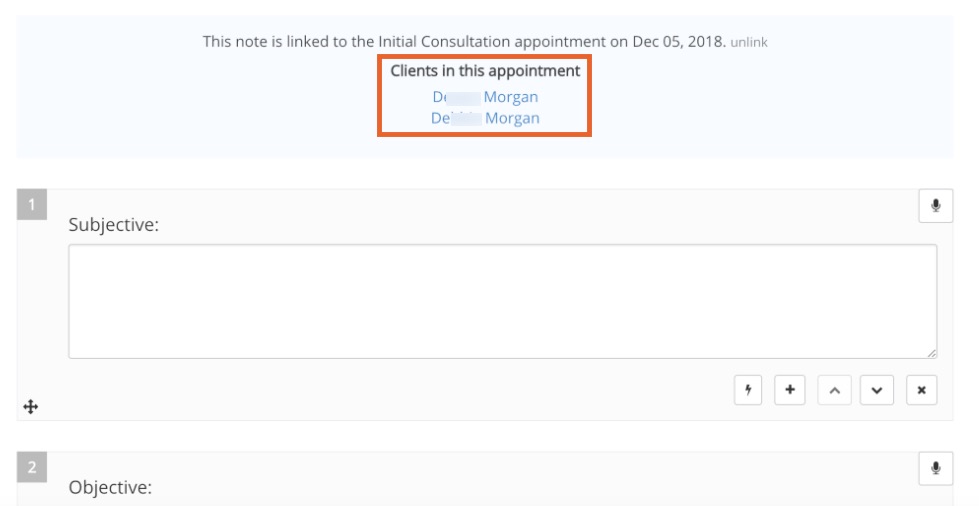- Notes attached to appointments with multiple clients will show all clients attending the appointment at the top of the note.