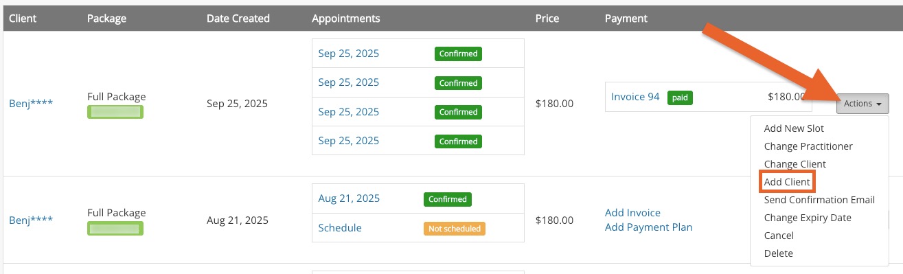 - Once additional clients are added to a package, they will be able to schedule appointments as part of that package, just like the main client can do. This means they can schedule their appointments using the booking widget or secure portal, or your staff can schedule them manually.