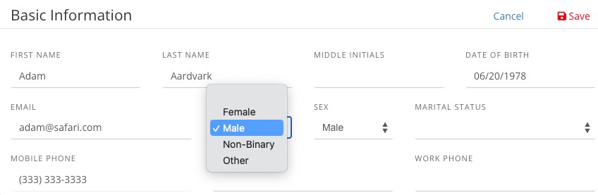 PracticeQ allows you to add custom genders to the client profile gender selection field.