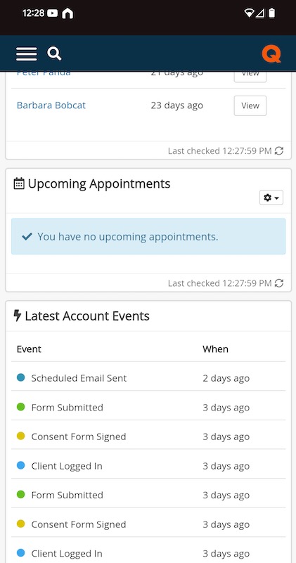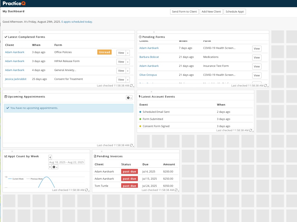 PracticeQ's dashboard is flexible and customizable; it displays the info you want to see, where you want to see it.