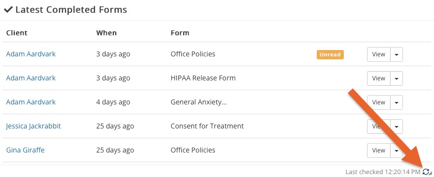 - Refresh a widget manually by clicking the refresh icon in the bottom right corner.
