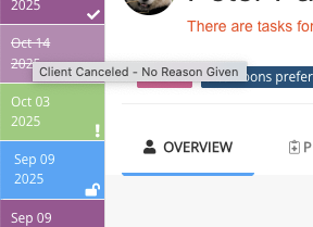 2. You may also view the cancellation reason by hovering over the cancelled appointment in the client's timeline.