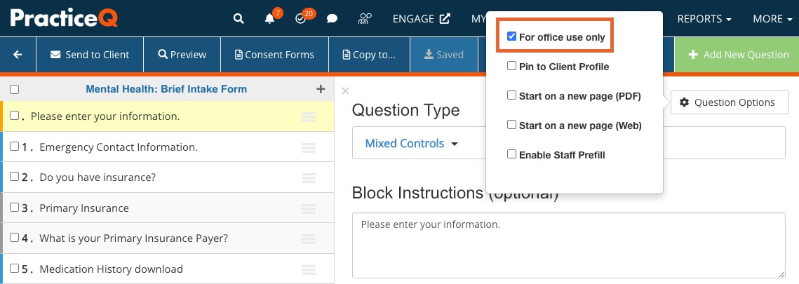 Mark a Question as "Office Use"