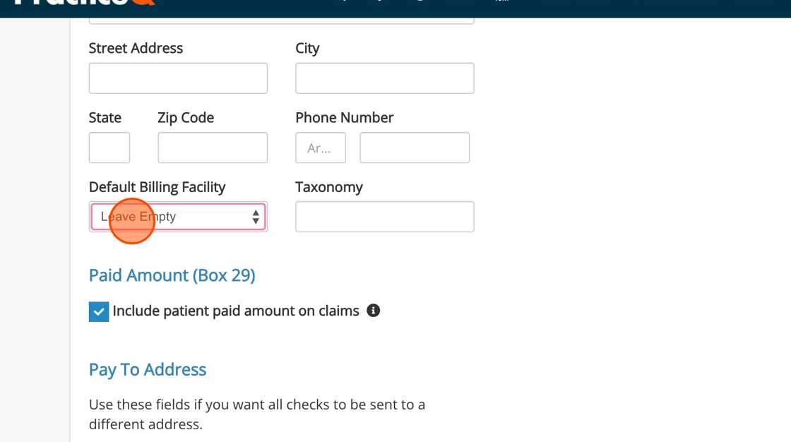 5. If you have more than one facility, select one as the default using the Default Billing Facility dropdown menu.