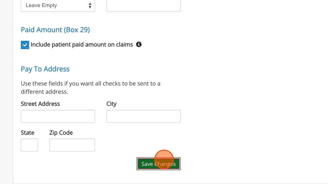 6. Click Save Changes to ensure your updated information is saved by the system for your future claims and superbills.