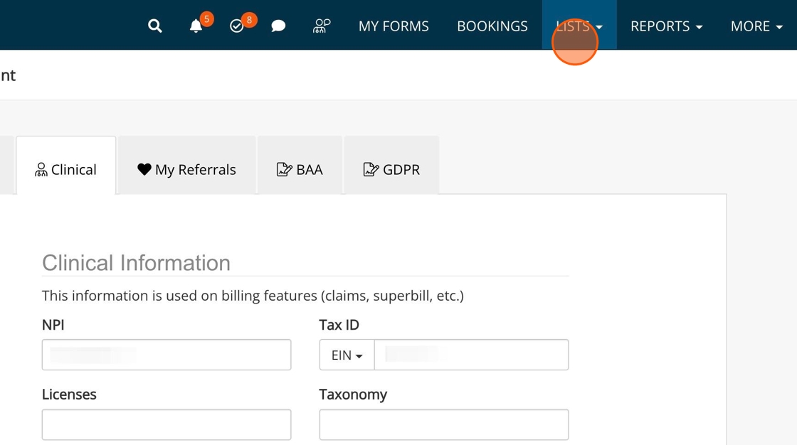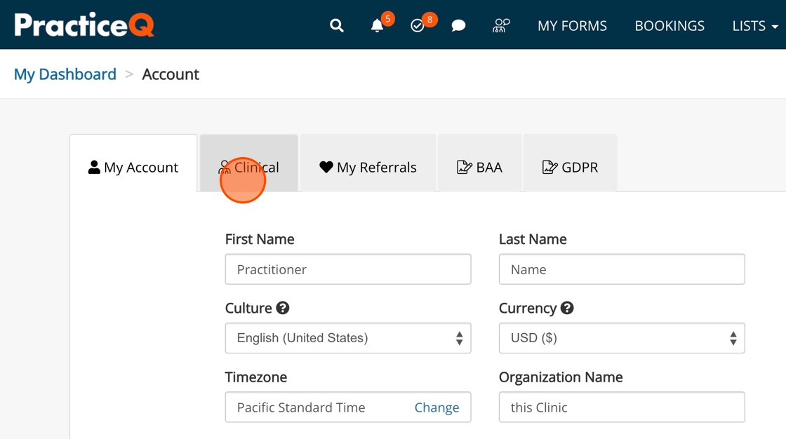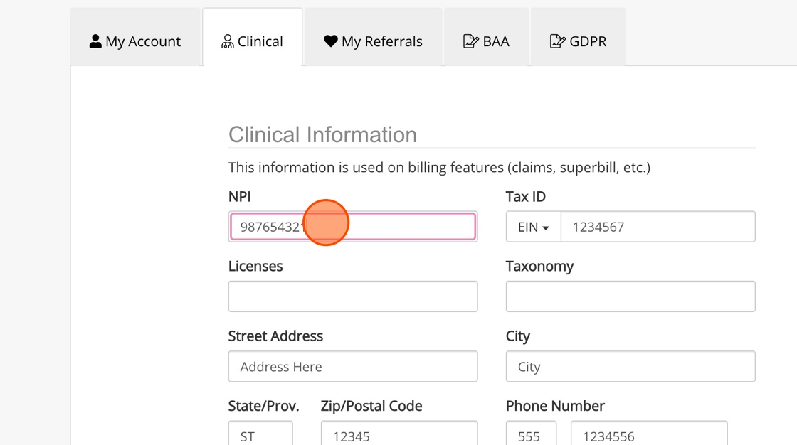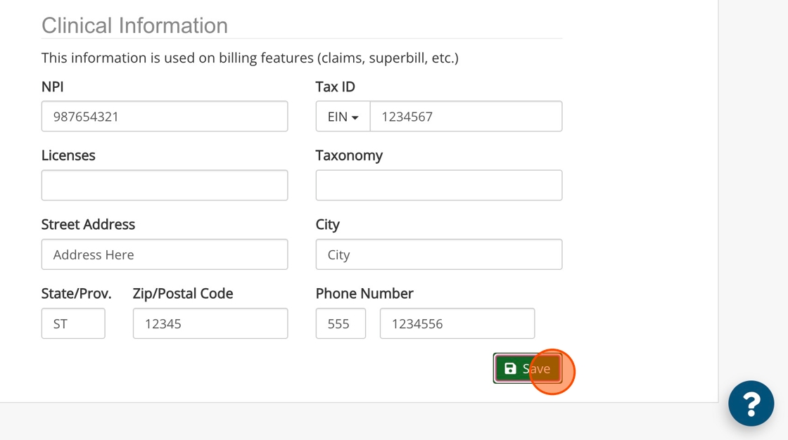 Note: Ensure that each practitioner who wants to bill under their own name has their personal clinical information listed under their settings.