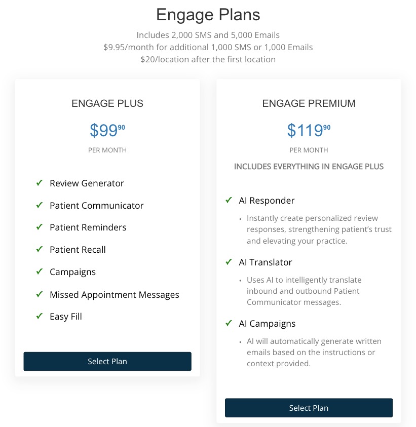 3. Review the features for the Engage Plus and Engage Premium plans.