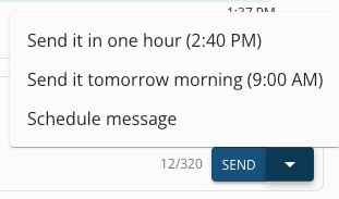 Click Engage from your PracticeQ toolbar. Click Patient Communicator. Click Start Conversation. If the contact is an existing client, click in the Existing Patient field and begin typing the name of the client. A minimum of three letters is required to produce a list of search results. Select the name you want from the list. The message history with this contact will fill the screen. If the contact is not an existing client, enter the number in the Phone number field. If Engage recognizes the number as textable, the Name field will open. Enter the contact name and a new thread will open in the Patient Communicator. Message Options To send a free-form message, place your cursor in the message box and type your message. To use a message template, click the three lines icon and select a template from the list. To insert an image, click the portrait icon. To use a quick action (such as sending a review request), click the thunderbolt icon and select an action. To insert an emoji, click the smiley face icon. Click SEND to send the message immediately, or select an option to send it in the future. Message Types To see if a previously sent message was automated or free-form, refer to the icon on the right. Automated messages will display the PracticeQ icon. Free-form messages will display the user's initials. For more about Engage and how you can add it to your PracticeQ account, click here.