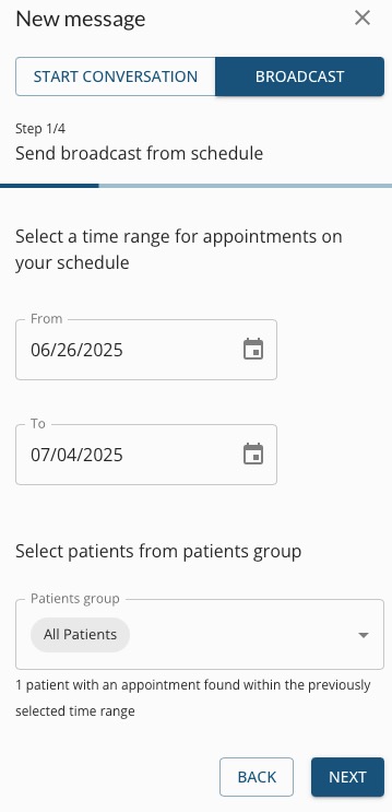 - If you want to target a specific patient group that you have created in the past, select the group from the Patients group field. To learn more about creating patient groups, click here.