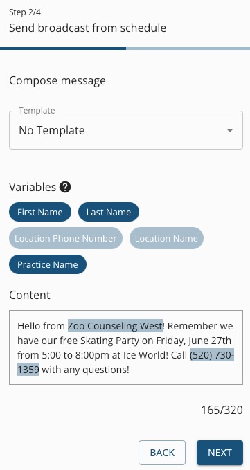 Engage - Send a Broadcast Text Via Bookings