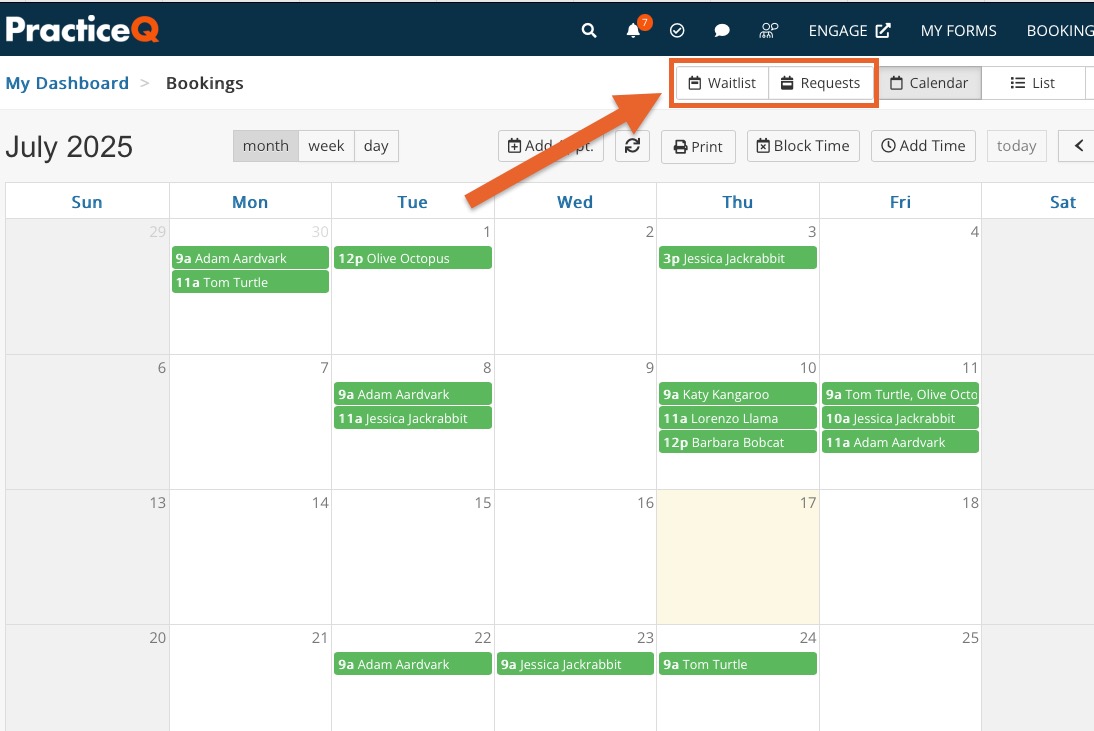 Note: To quickly access the Easyfill Requests list from PracticeQ, click Requests from your Bookings page.