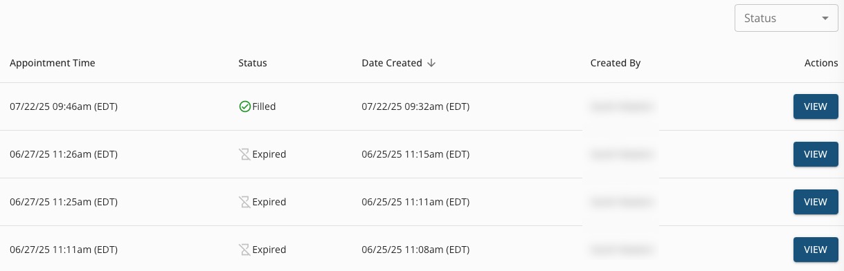 - A request's status will change to Expired once the available appointment time has passed.