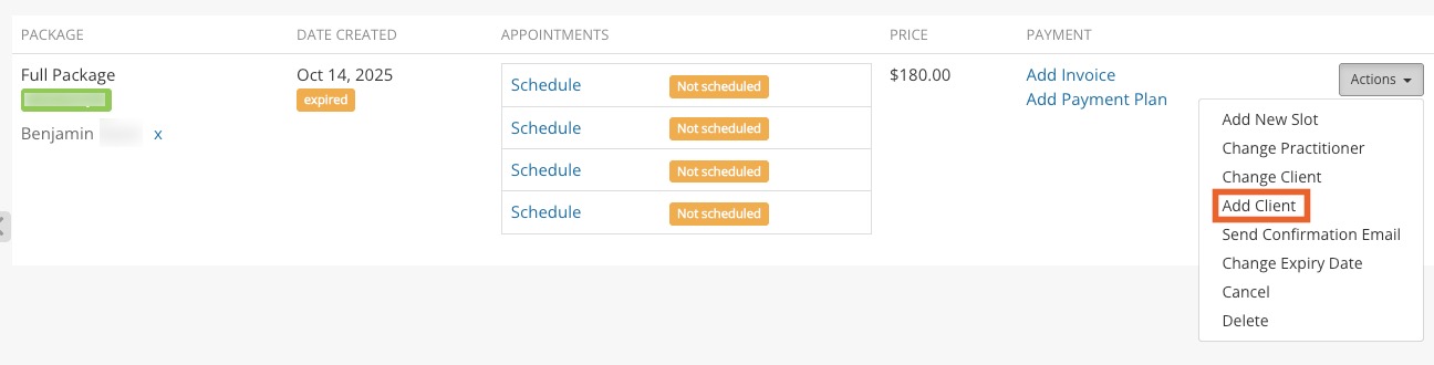 - Clients will only be able to schedule, cancel, or reschedule appointments within the package.