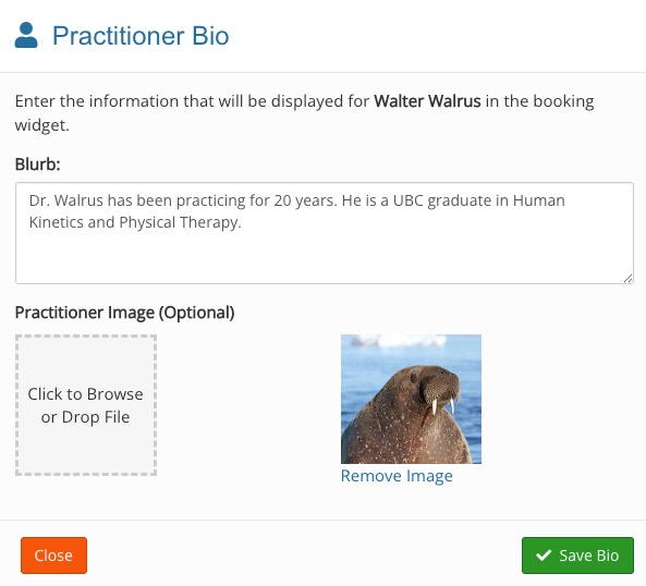 When a client is booking an appointment through the widget, they may need to select a practitioner. PracticeQ allows you to add an image and a blurb for each practitioner to display in the booking widget.