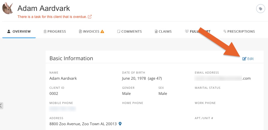 - From their Client Profile, click Edit.